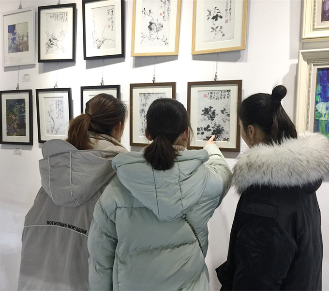 展厅里,同学们三两结伴,穿梭于艺术之间,汲取作品间的创作灵感,感受写意油画的独特魅力。
