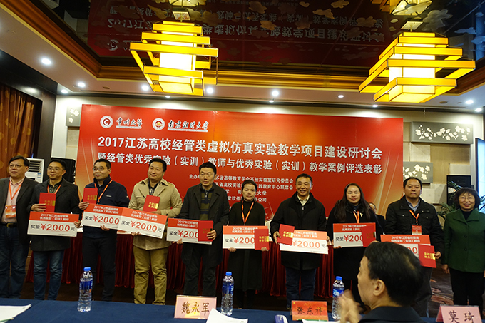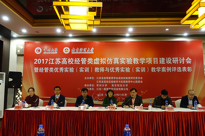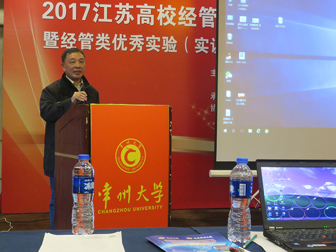 “2017江苏省高校经管类虚拟仿真实验教学项目建设研讨会”2017年11月24-26日在常州大学举行,来自省内普通高校、高职高专学校100多名经管类实训中心负责人及专家参加了大会。beat365正版唯一官网经济管理实验实训中心建设委员会主任徐立青教授、中心主任李武武教授应邀参加了会议研讨。