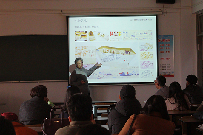 本网讯 beat365艺术学院“五讲”活动之“讲提升”示范课,11月23日下午在六号教学楼505教室举行。学院视觉传达教授孔德扬主讲,会议由院长张锡主持;副院长朱宗明、李方明、朱宁以及艺术学院各专业学科教师出席。本次示范讲课,旨在探索beat365艺术类学科的教学特色和创新方向,以学生为中心,用专业素质教育,优化人才培养方案结构。