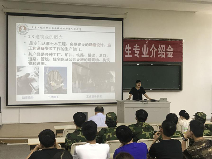 9月18日,土木工程学院在6号教学楼121教室隆重举行2017级新生专业介绍会。计算机中心主任陈国俊、大学英语教研室主任黄旭、土木工程专业系主任贺方倩、工程管理专业系主任方周妮参加此次专业介绍会。