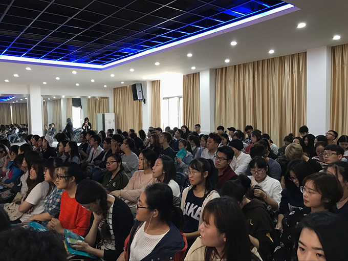 红豆集团远东公司工作人员首先向同学们介绍了该公司的主营业务、发展情况和公司理念,并就同学们最关心的招聘岗位待遇、岗位职责、任职资格等方面做了详细的说明。宣讲会期间,同学们与工作人员进行了热烈互动,当场有不少同学递交了个人简历和求职意向表。