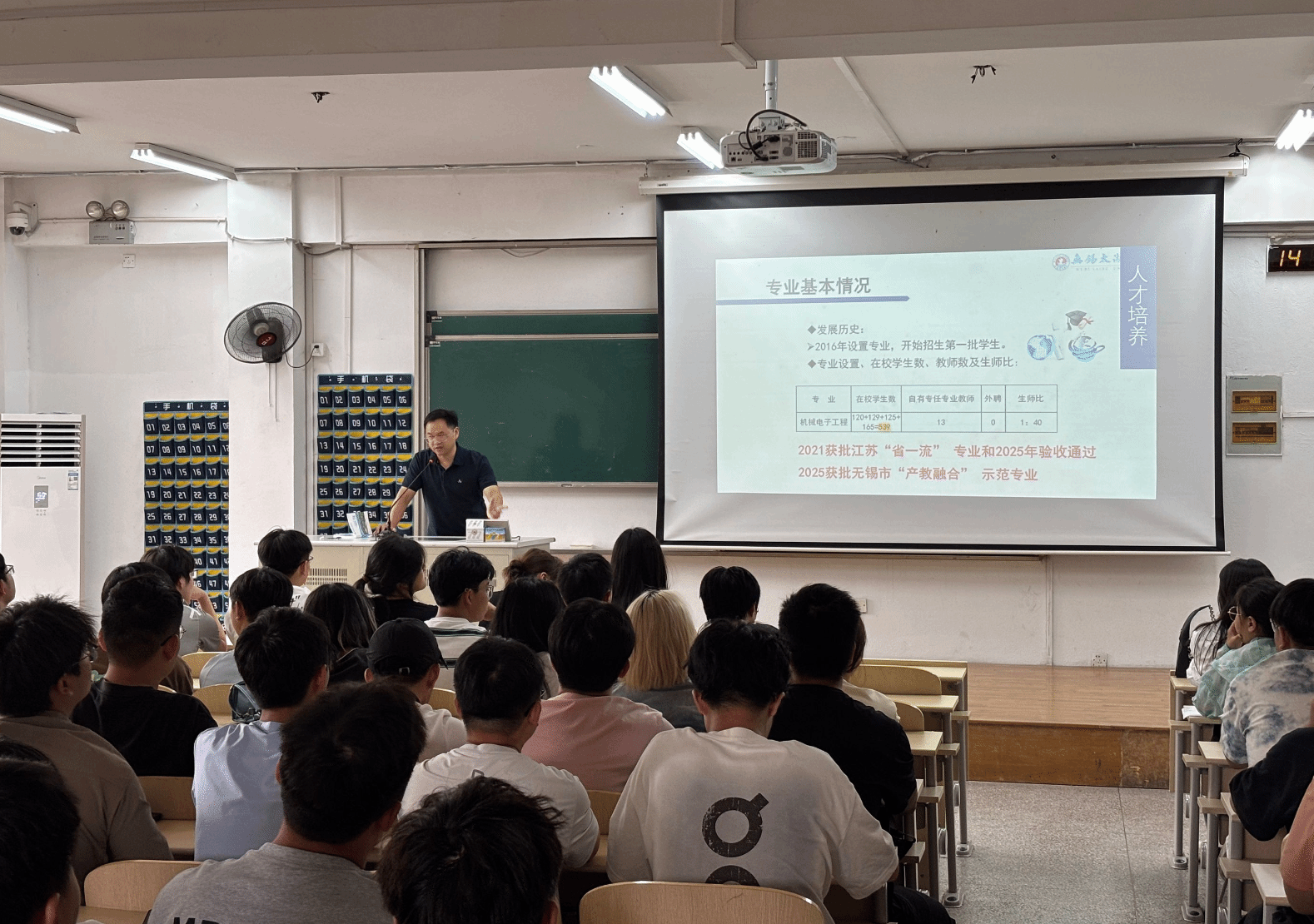 为帮助2025级新生顺利实现从中学到大学的过渡,尽快适应新的学习环境并建立对机械电子工程专业的初步认知,9月18日下午,机械电子工程系举办了2025级专业教育暨新生学业规划大会。本次会议由系主任陈炎冬主持,2025级新生班主任张韬、应铭、杨雅冰,青年教师何俊汐及全体新生共同参与。