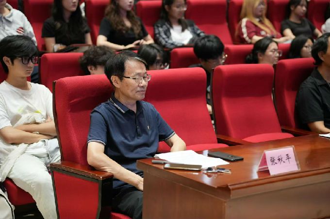 此后,艺术学院院长张秋平教授发表主题讲话,围绕“大学的本质”与“大学的责任”,提醒同学们养成专注学习的习惯,不断积累知识,锻炼思维,提升综合素质。讲话中,张院长强调大学是需要不断追求进步的殿堂,对在座的每一位同学而言,接下来的四年是极其宝贵的时光,如果虚度,将来必然会付出更大的代价,只有坚持不懈、持之以恒,善于“除”去杂念,脚踏实地,才能走得更远,成就精彩的大学生活。