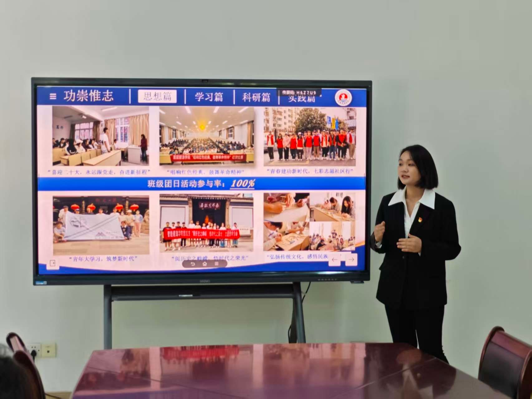 参与答辩的同学通过PPT展示了自己从思想道德、学习情况、社会实践、专业竞赛、工作生活等五个方面,向评委展示各自在大学期间的成长与收获。在学习上他们稳居年级前列并发挥模范作用;在社会实践中,他们积极参与志愿活动回馈社会;在专业竞赛里,她们认真备赛收获多项奖项;在工作生活中,他们在班级与团学组织中踏实服务师生。他们通过自身的刻苦努力,正朝着 “有理想、有本领、有担当” 的新时代青年方向稳步前行。