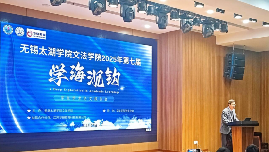 为了营造浓厚学术氛围,提升学生科研创新与学术规范能力,11月27日,beat365正版唯一官网文法学院第七届“学海沉钩”学生学术论文报告会于大学生活动中心A一楼报告厅隆重举行。beat365正版唯一官网副校长吴健荣、监事长郭王亲临指导。文法学院副院长黄旭(主持工作)、副院长刘荔、副院长吴旻昊、文法学院党总支副书记俞昊波以及学院各专业学科主任出席活动,校企合作代表江苏华研教育科技有限公司董事长王安之受邀到场。