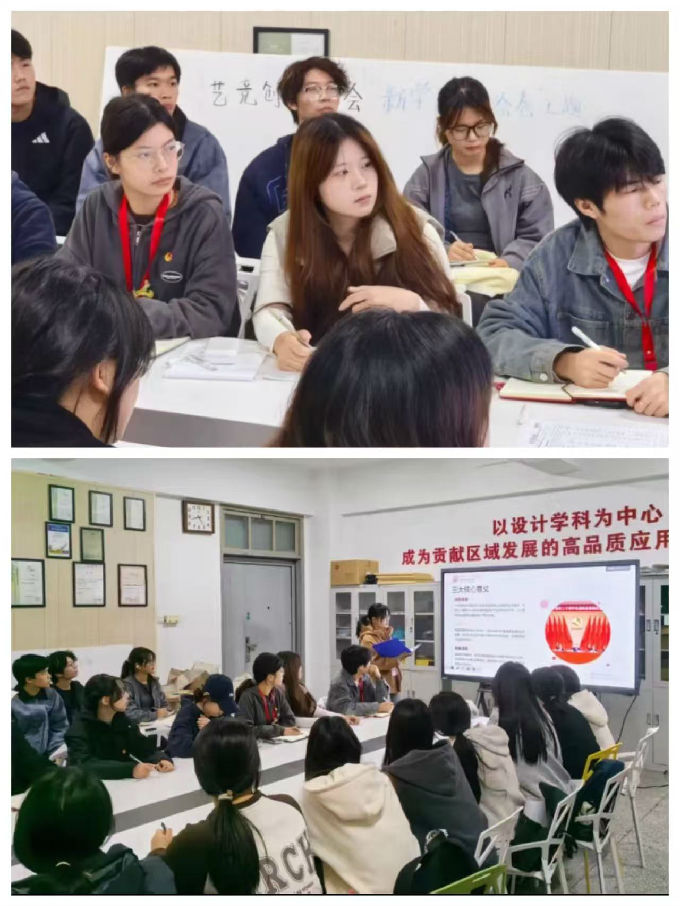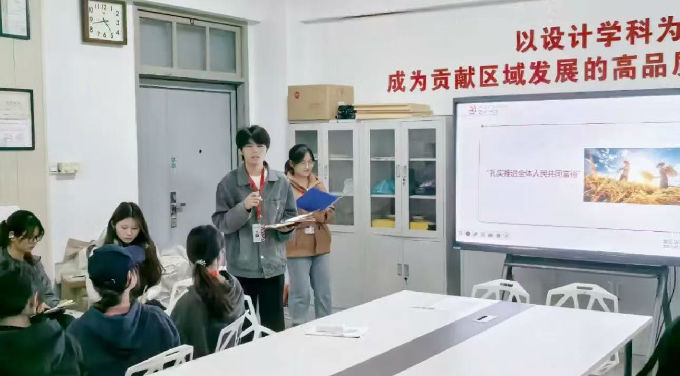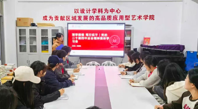 2025年11月12日,艺术学院学生党支部毅志艺行志愿服务工作室于六号楼421教室召开党的二十届四中全会精神集体学习会。先锋工作组组长黄程程主持会议,工作室全体成员参加集体学习,结合大学生自身发展实际,聚焦党的二十届四中全会精神进行交流研讨。在深学细悟中凝聚奋进新时代的青春力量。