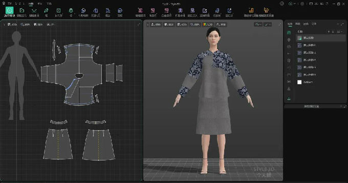 除了实体复原,团队还借助Style3D 技术打造数字化复原效果图。通过三维建模,真实还原服饰的垂坠感、面料肌理与动态效果,为传统复原注入科技活力。