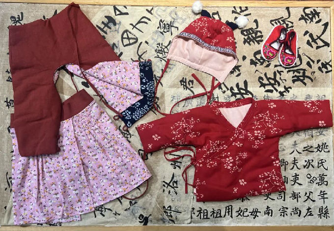 面料是服饰的灵魂,这种自带粗粝质感与自然纹理的布料,不仅是近代吴地百姓的日常选择,更承载着水乡的生态记忆——棉线交织间,仿佛能看见旧时甪直古镇的织机声、河水声相互交融,让复原服饰更具 “烟火气” 与地域辨识度。