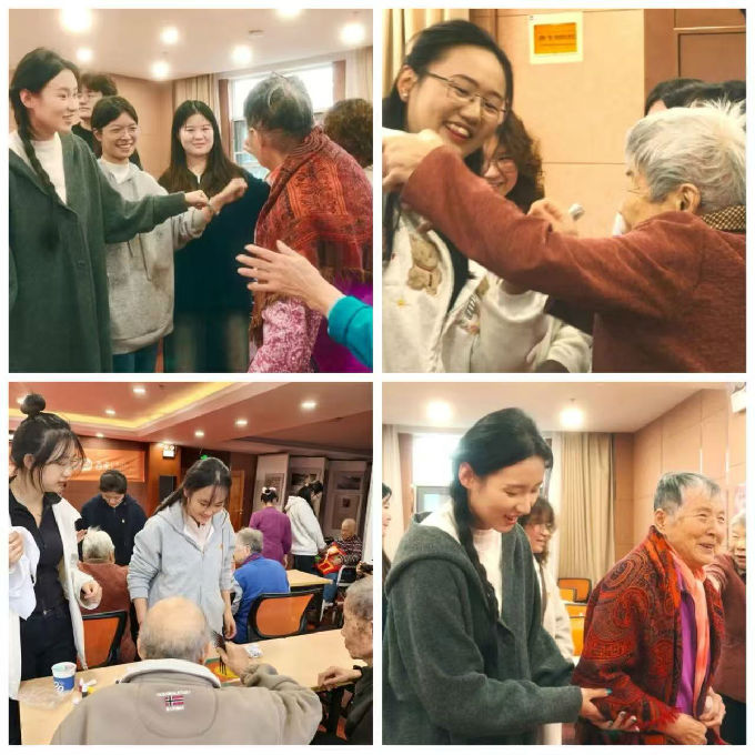 活动当天,学生党员志愿者们提前来到百禾怡养院,与老人们开展轻松有趣的聊天。为贴合老人年龄与人生阅历,志愿者主动选取家乡轶事、青年时期工作历程、日常兴趣喜好等贴近老人生活话题作为切入点,以耐心细致的态度倾听老人们分享人生过往。交流过程中,部分老人兴致盎然地追忆往昔生活片段,还有老人特意取出家人照片,向志愿者温情展示家庭点滴。整场活动氛围温馨、关怀充盈,取得了“老有所乐”的实效与积极的社会评价。