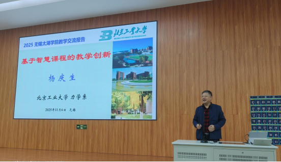 为深化教育数字化转型,推动课程建设与教学模式革新,2025年11月6日,智能装备工程学院特邀北京工业大学杨庆生教授作题为《基于智慧课程的教学创新》的专题报告。智能装备工程学院院长任乃飞、副院长杨敏、教务处王敏老师、学院全体教师以及兄弟学院教师齐聚现场,共同探索AI时代教学创新的新路径。