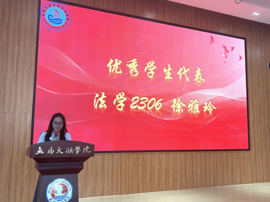 优秀学生代表徐雅玲分享了自己的大学成长故事,从初入校园的迷茫到深耕专业的笃定,她以“越努力越幸运”的亲身经历,激励学弟学妹们“以梦为马,不负韶华”,在学术竞赛、社会实践中绽放光彩。
