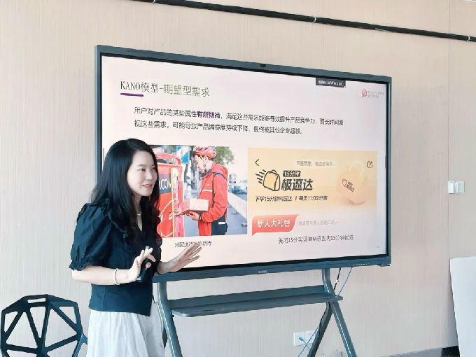 李叶林老师主讲的是交互设计专业的知识模块——“KANO 需求模型”。她以多年的设计行业实践经验为依托,用逻辑清晰的思维框架和案例驱动的讲解方式将抽象模型化为可感知的用户体验路径,实现了知识与职业能力培养的有机结合。她以贴近日常生活的奶茶产品为例子,用生动亲切的语言进行了案例分析,引导学生在轻松的互动中,逐步掌握用户需求转化为产品价值的全过程,教学效果显著。