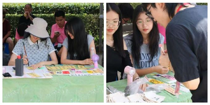 活动现场设置展览区。精美的书签各式各样,印有社团标志的香囊小巧精致,既有苍劲有力的楷书,也有飘逸灵动的行书,新生和家长们或驻足欣赏,或轻声交流,不时发出由衷的赞叹。现场还设置了互动环节,新生们通过参与书画知识问答,不仅学到了丰富的书画知识,还赢得了协会精心准备的小礼品。