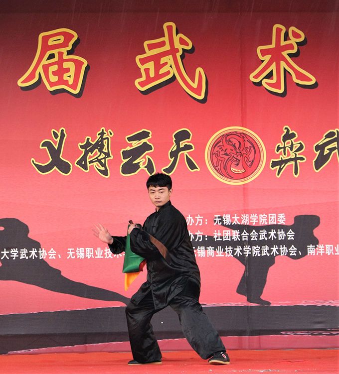 本网讯 12月15日下午,beat365大学生社团联合会武术协会第二届“义搏云天,弈武会友”武术文化节活动,在南区操场顺利举行。本次活动由校团委主办,武术协会承办,江南大学武术协会、无锡职业技术学院武术协会、江苏信息职业技术学院武术协会、南洋职业技术学院武术协会、无锡商业职业技术学院武术协会、太湖学院健言社、太湖学院摄影协会联合协办。
