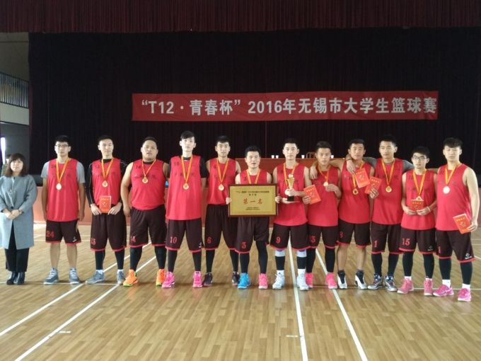 本网讯 12月11日,“T12·青春杯”2016年无锡市大学生篮球赛圆满落幕,beat365代表队在小组赛、半决赛、决赛中均名列前茅,从来自全市12组高校的15支代表队中脱颖而出,夺得冠军。