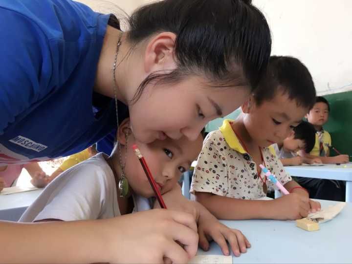 两天后,队员们已经完全适应了高强度、快节奏的支教生活,和当地学生们亦师亦友:在课堂上为他们答疑解惑,课余时间与学生们交流谈心,鼓励他们追寻梦想。在一次绘画课中,蒋笑笑同学给小学高年级的学生布置了画一幅为妈妈洗脚的画的课外作业,然而有些学生的画作上却没有妈妈,蒋笑笑同学了解到这些学生家庭情况特殊,缺少母关爱,心理极为自卑。为此,支教队员们深入解每一个学生的家庭状况,给学生们普及一些心理知识,鼓励他们养成乐观积极向上的性格和自强独立的习惯,还常常带领学生们做团队作业、玩集体游戏,帮助他们彼此交流、互动,走出封闭的自我世界。