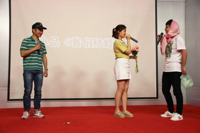 晚会开始,大学生记者团团长王丹丹代表全体学生记者欢迎前来观看表演的领导、老师,对近期来辛苦排练的成员们表示感谢。本次晚会节目种类繁多,内容丰富多彩,融歌曲、舞蹈、朗诵、小品、吉他弹唱等表演形式于一体。采访二部成尚谦同学的歌曲《约定》拉开了晚会的序幕。摄影部部长梁晨作为校园十佳歌手带来的歌曲《别找我麻烦》让同学们赞不绝口,新媒体中心《大话太湖》、采访二部诗朗诵《热爱生命》、编辑部合唱《太湖学院的日子》、秘书处《小幸运》以及文学部小品《说说真心话》为现场观众展示了多才多艺的学生记者团队。晚会以各部部长的歌曲串烧为压轴,点燃了观众的激情。最后,摄影部精心制作的视频展现在大家面前,学生记者代表在影像中道出内心的想法,展望了记者团的未来,感动了在场的每一个人。
