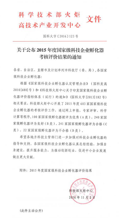 近日,科技部火炬中心公布了2015年度国家级科技企业孵化器考核评价结果,青岛科技大学国家大学科技园孵化器被评为“A类国家级科技企业孵化器”称号。