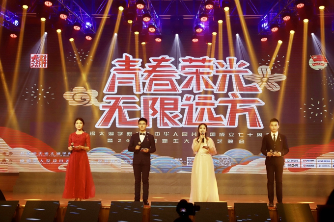 晚会以“青春荣光,无限远方”为主题,分为“星光”、“烁光”、“荣光”、“晨光”四个篇章。动感的灯光秀将舞台点亮,由节目组创编的精彩节目逐一登场,令人目不暇接。开场歌舞表演《少年中国说》蕴含了传统服饰、舞扇等多种中国风元素,刚劲而豪迈;歌曲《追寻》《你是我的英雄》《守梦人》《祖国在我心中》、情景剧《忘念》、小品《一张邮票》、相声《对对联》、朗诵《盛世中国》等节目轮番上演,展现了浓厚的校园文化氛围和青年学子朝气蓬勃、积极向上的青春风采,表达了太湖学子对祖国的美好祝愿和真诚礼赞;舞蹈《金桂花开朵朵香》,其精妙的编舞和唯美的布景,使观众们恍然间身临其境,闻到浓浓的桂花香,感受民族文明的悠悠底蕴;八位退役士兵在母校集合,为大家带来热血燃情的格斗表演《渴望荣光》,展现退伍不褪色、退役不退志的军人精神;舞蹈《哪吒》,灵感源自大热的同名国产动漫电影,“我命由我不由天!”正是太湖学子自强不息的真实写照;校团委原创出品的歌曲《为你绽放》在舞台上首次唱响,展现太湖学子坚守初心、勇于追梦的奋斗故事,该曲近期也被收录在“学习强国”平台中。临近尾声,由校园十佳歌手领唱的太湖青年版《我和我的祖国》,点燃了现场观众的内心激情。师生们纷纷起立,挥舞手中的小红旗,共同歌唱祖国。拳拳的爱国之心、深深的赤子之情在现场涌动,晚会也在观众们热情高涨的欢呼声中落下帷幕。