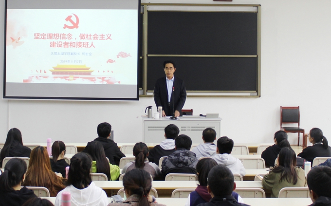 校党委委员、宣传部部长阙明坤以“新时代青年大学生的使命和担当”为题,与发展对象们畅谈新时代大学生成长成才话题。他指出,青年大学生最富有朝气、最富有梦想,青年兴则国家兴,青年强则国家强,今天我们处于哪里并不重要,重要的是明天迈向何方,人生的道路虽然很漫长,但紧要处常常只有几步。大学是追求高深学问的场所,是传承人类文明的高地,广大学生党员要勇担使命,争做时代先锋。
