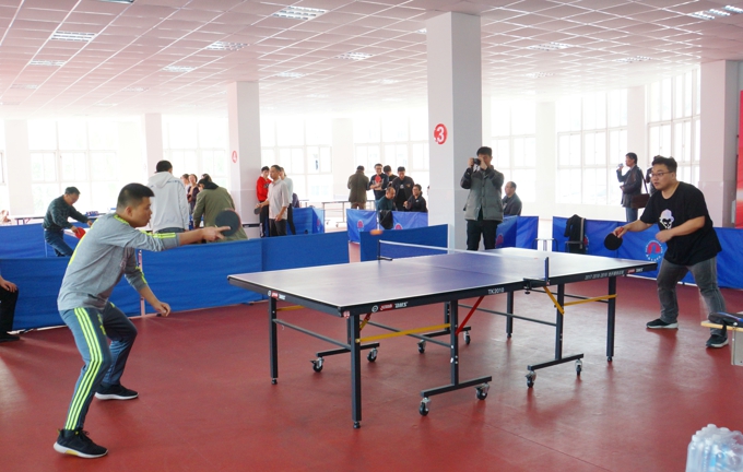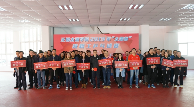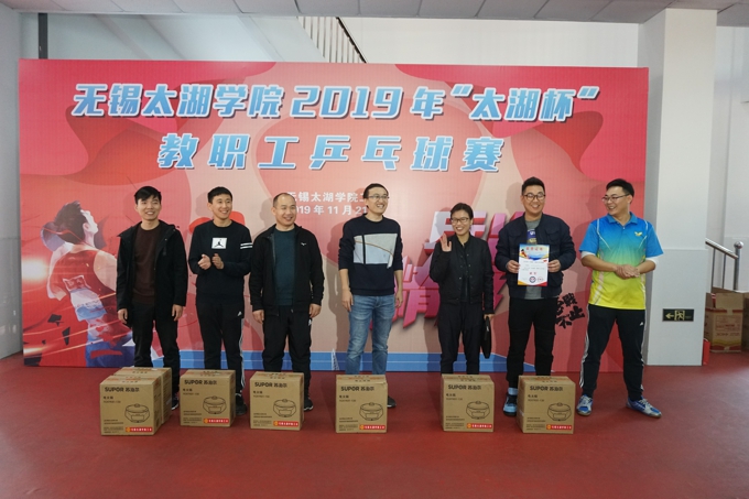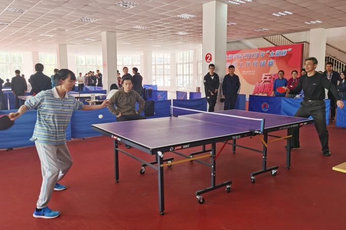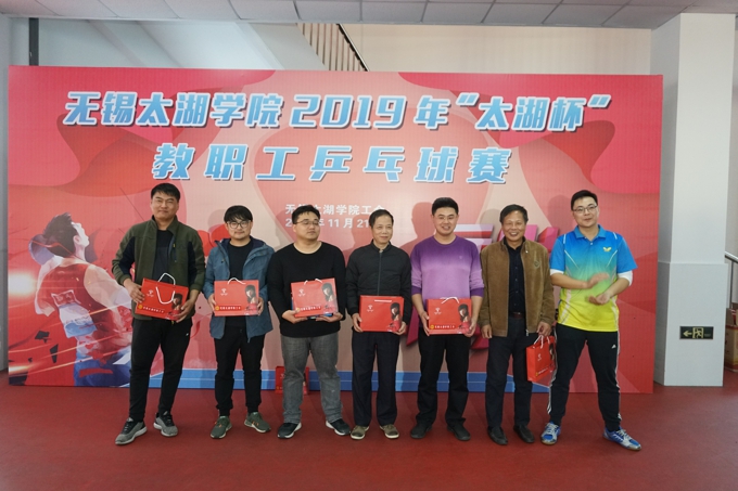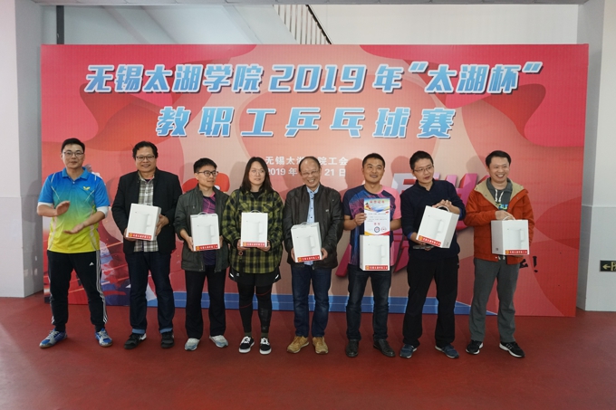 本网讯 为深化“不忘初心、牢记使命”主题教育成果,打造积极、健康、向上的校园文化,营造健康文明的生活方式,持续增强教职工凝聚力,11月21日,由学校工会主办,体育课教学部协办的2019年“太湖杯”教职工乒乓球比赛在华夏园乒乓球馆成功举行。校党委副书记、工会主席丁涛,副校长陈鹏飞,校办主任、工会副主席朱中伟及全校12支队伍百余名教职工参加了比赛。