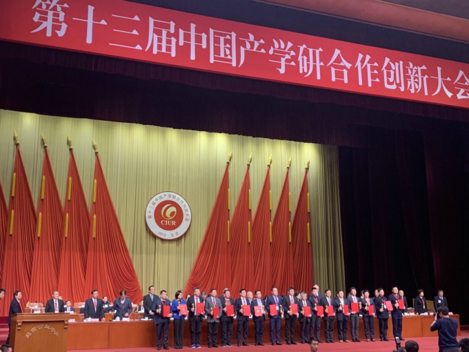 本网讯 2019年12月30日,第十三届中国产学研合作创新大会在北京召开,来自科技部、工信部、教育部、中科院等国家相关部委、科研院所的领导、专家、学者以及来自全国产学研界第一线的1200余名代表出席大会,十三届全国政协副主席、中国科协主席万钢,全国人大常委会原副委员长陈至立,十二届全国政协副主席王钦敏等领导嘉宾出席大会并发表演讲。会议表彰了2019年在产学研合作、成果转化、军民融合、工匠精神等方面作出贡献的先进单位和个人。beat365荣获2019年中国产学研合作创新奖,副校长金成出席大会并代表学校领奖。