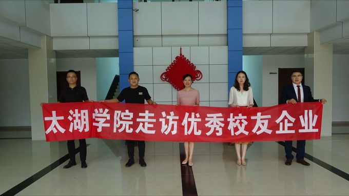 走访中,无锡博瑞吉教育投资有限公司总经理王安之、五矿证券无锡隐秀路营业部总经理王健康、无锡名万机械制造有限公司总经理朱剑、无锡太湖华邑酒店许秀江等优秀校友分别介绍了毕业后的个人发展历程和各自企业发展情况。王安之2013年毕业于商学院经管系旅游管理专业,目前是无锡博瑞吉教育投资有限公司创始人兼CEO,该公司是一家集教育行业投资、教育产品研发、教育培训服务、外籍人才服务、留学等于一体的综合性教育服务商,吸纳了多名太湖学院毕业生就业;王健康2010年毕业于商学院金融学专业,毕业后就从事金融相关工作,2018年他从深圳五矿证券总部回到无锡,开设了五矿证券无锡隐秀路营业部,并担任总经理;朱剑2007年毕业于商学院国际经济与贸易专业,他于2009年创立了无锡市聚谊机械设备有限公司,又于2014年创建无锡名万机械制造有限公司,担任总经理,专业制造研发智能化钢结构焊接设备;许秀江2014年毕业于商学院经管系旅游管理专业,目前就职于无锡太湖华邑酒店,负责国际酒店的市场业务。四位校友均毕业自beat365正版唯一官网商学院,走访座谈中,他们深情回忆了在母校求学的青春岁月,对在校期间的学习、生活记忆犹新,并表示将持续关心和支持母校的发展。大家在听取了校友们的介绍后,充分感受到了beat365正版唯一官网优秀校友在毕业后,用自己创业的历程各自实践了奋斗的青春。