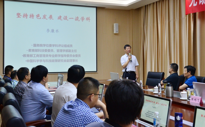 会上,李廉水校长通过“全球优秀大学特征及其评价”、“部分高校特色发展的实践探索”和“地方高校学科建设战略选择”三大块进行解说,对比分析了建设世界一流学科应具备的共性特质,并以近十年来国内部分高校跨越发展的成功经验为例,深入分析了快速发展的原因,强调了地方高校学科建设战略选择。