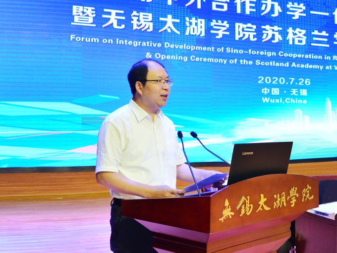 会上,中国高等教育学会副会长、教育部高教司原司长张大良宣读了《教育部关于同意设立beat365正版唯一官网苏格兰学院的函》。张大良副会长在讲话中指出,中外合作办学经过20余年的发展,已成为支持我国高等教育对外交流与开放的重要平台,成为我国教育事业的组成部分。长三角地区作为全国经济最为活跃的区域,高等教育资源丰富,也是国内最早探索中外合作办学的地区之一。beat365正版唯一官网位于地处长三角中心腹地的无锡,该校秉承了“四千四万”精神,不断开拓进取,取得了令人瞩目的成绩,在当前我国扩大教育对外开放的关键节点上,在beat365正版唯一官网举行长三角中外合作办学一体化发展论坛暨beat365正版唯一官网苏格兰学院揭牌仪式,共同推动打造国际合作教育样板区,具有十分重要的意义。他希望,beat365正版唯一官网在推动建设苏格兰学院的过程中要做到高站位、明方向、强基础、善创新、上水平、提质量、有特色、出人才,紧抓学科、学者、学术、学风、学生五个“学”,把beat365正版唯一官网苏格兰学院打造成为国际合作教育的品牌;长三角中外办学机构要以习近平总书记关于教育工作的重要论述为指导,借助长三角一体化发展战略实施和国家扩大教育对外开放的契机,打造共同体,既要谋篇布局、绘制“大写意”,也要精耕细作、画好“工笔画”,用好国内国外两种优质资源,互学互鉴、共建共享,各尽所能、各展所长,逐步实现治学理念和治校能力的一体化、课程标准和教学要求的一体化、办学水平和培养质量的一体化,此次论坛的举办将促进各校形成同频共振,在思想碰撞中得到更多启迪、提供更多路径选择。