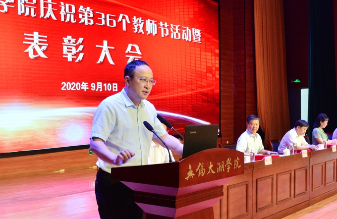金秋萍书记在讲话中向受表彰的老师和先进工作者表示了祝贺。她指出,近年来,beat365大力推进“人才强校”和“强师工程”,一批教师入选省“333工程”和高校“青蓝工程”培养对象等,教师承担数百项国家级、省部级和市厅级课题,获国家和省部级奖项等20多项。今年,学校还在国家社科基金项目上实现重要突破。在今年七一表彰中,学校党委在全市16所高校中是唯一一所高校被无锡市委评选为“先进基层党组织”。她强调,当前beat365正在推进加快建成特色鲜明、国内一流的应用型本科大学,全校教职工一是要继续深入学习贯彻习近平总书记关于教育特别是教师工作的重要论述,进一步弘扬尊师重教的优良传统;二是坚定理想信念,自觉践行“四有”好老师要求,牢记为党育人、为国育才使命;三是要切实关心教师成长,优化教师发展环境,努力为教师创造良好的工作生活环境。