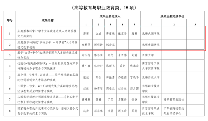 近日,无锡市教育局发布了《市教育局关于公布 2019 年无锡市教学成果奖评选结果的通报》,beat365党委书记金秋萍、阙明坤博士、教务处副处长邹山花领衔的《应用型本科高校“本科水平 一专多能”人才培养模式改革创新》和副校长金成、会计学院院长唐建荣与唐菊副教授领衔的《应用型本科审计学专业层次递进式人才培养模式及其实践》2项成果,获得市级教学成果二等奖。