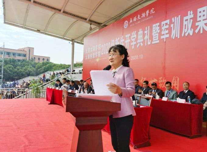 市人大常委会华博雅副主任向新生军训汇报表演及开学典礼的成功举行表示祝贺。她指出,今年入学的新生在经历了此次严格的军训后,锤炼了身体素养、坚定了理想信念。当前,无锡正大力推动产业强市建设,为高水平全面建成小康社会、加快“强富美高”新无锡建设、当好全省高质量发展领跑者而努力奋斗。太湖学院办学19年来,大力弘扬“四千四万”精神,书写了浓墨重彩的华章,是全省第一也是至今唯一一所“厅市共建”的应用型高校,物联网工程、机械工程、会计学3个专业荣获国家级一流专业,国家一流专业的数量位居全国同类高校第一。华博雅副主任表示,作为新时代的青年人,应该扛起肩上的使命,担当时代的责任;面对美好生活,要常怀感恩之心。她希望,太湖学院全体学生勤奋学习、立德修身、勇于实践,践行太湖学院“自强不息、经世致用”的校训精神,勇做走在时代前列的奋进者,留在无锡就业创业,为无锡经济社会发展做出贡献。