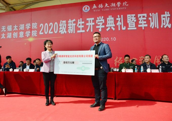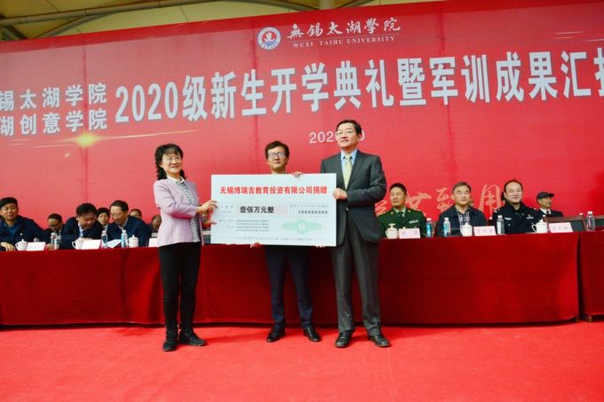 学校党委书记金秋萍在讲话中指出,2020级新生在疫情和升学的双重考验中展现了昂扬的风貌、奋发的斗志,在军训汇报表演中展现了朝气蓬勃的精神风貌。她指出,为更好支持成绩优秀的贫困学生就读太湖学院,学校在省民政厅、市民政局的大力支持下,成立了beat365正版唯一官网教育发展基金会。基金会得到了詹启江、王安之等优秀校友,江苏银环、无锡电仪、市第六市政建设等爱心企业的捐资支持。她希望,站在新的人生起点上,2020级新生一要坚定理想信念,树立坚定的政治方向和远大的人生志向,努力成为有理想、有责任、敢担当的太湖人;二要提高综合素养,树立只争朝夕、时不我待的紧迫感,成为自强不息、能负重任的优秀人才;三要投身创新创业,抢抓机遇、勇于实践,涌现出更多像詹启江、王安之这样无私奉献的优秀典型,继续发扬四千四万精神,创造出无愧于伟大时代的辉煌业绩。
