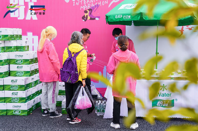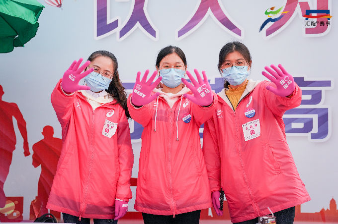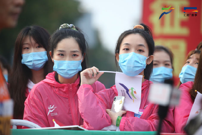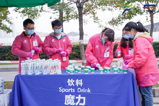 开赛日当天凌晨4时,768名志愿者已集结完毕,相继奔赴主要赛道及场地开始赛前准备工作。比赛开始后,沿线各处志愿者严阵以待,以饱满的精神状态坚守在各项志愿服务工作岗位上。其中,485名赛道志愿者主要服务在前半程的赛道沿途补给站,赛事过程中他们将饮用水及食物补给摆放整齐,方便参赛者拿取;93名医疗志愿者则分布于赛道的各医疗点,为跑者比赛期间提供健康咨询和紧急救护;180名啦啦队志愿者在赛道旁手持标语,为经过的每一位参赛者加油助威;另有10名志愿者为央视节目录制提供后勤服务,得到了节目组的一致肯定。志愿者们以热情、专业、高效的志愿服务,圆满完成大赛的各项工作任务,赢得赛会单位和参赛跑者的点赞。