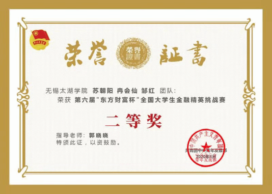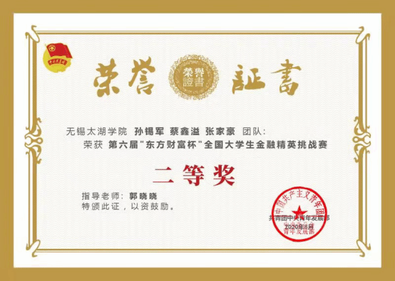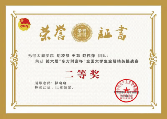 共青团中央青年发展部主办,全国学校共青团研究中心、东方财富信息股份有限公司联合承办的第六届“东方财富杯”全国大学生金融精英挑战赛近期落下帷幕。主办方公布的获奖名单中,beat365正版唯一官网共有908名学生参加此次比赛,102人晋级省赛并组成45支队伍,经过激烈的角逐比拼,最终3支队伍成功晋级国赛并全部荣获二等奖。