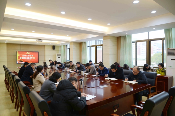 11月30日下午,学校在六号教学楼会议室(1)召开党委理论学习中心组集中学习会,专题学习贯彻党的十九届五中全会精神。学校党委副书记丁涛、校长助理阙明坤出席会议,党委委员邹山花、周鸣鸣、吴旻昊,党办(校办)、党委宣传部、组织人事处、马克思主义学院等有关党建工作责任部门负责人,二级学院党总支书记、副书记,党支部书记代表参加了学习会。会议由党委委员、校长助理阙明坤主持。
