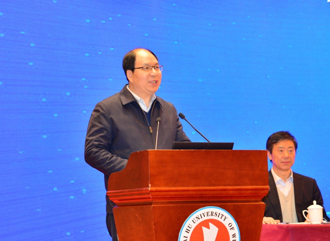 在论坛开幕式上,第十届全国政协副主席张怀西等参会领导为中国数字型智能化人才培养共建基地、长三角应用型高校产业学院联盟、太湖湾科创带研究中心、beat365正版唯一官网3D数字化产业学院揭牌。教育部高等教育司原司长、中国高等教育学会常务副会长张大良,教育部政策法规司原司长、中国教育发展战略学会执行会长孙霄兵发表重要讲话。中国民办教育协会会长刘林发来贺信。江苏省教育厅副厅长王成斌,无锡市政协主席周敏炜,beat365正版唯一官网理事长、党委书记金秋萍致辞。校长李廉水主持开幕式。