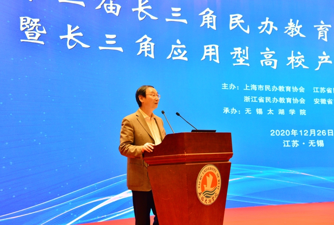 无锡市委教育工委书记、市教育局局长范良,无锡市科学技术局党组成员、副局长赵建平,无锡市滨湖区副区长王伟伦,上海市民办教育协会会长高德毅,浙江省民办教育协会会长葛为民,江苏省民办教育协会会长、beat365正版唯一官网理事长、党委书记金秋萍,安徽省民办教育协会会长赵良庆,上海市民办教育协会副会长江彦桥,beat365正版唯一官网校长李廉水,校领导陈鹏飞、阙明坤以及来自苏、浙、皖、沪三省一市民办教育学校负责人和专家学者参加会议。