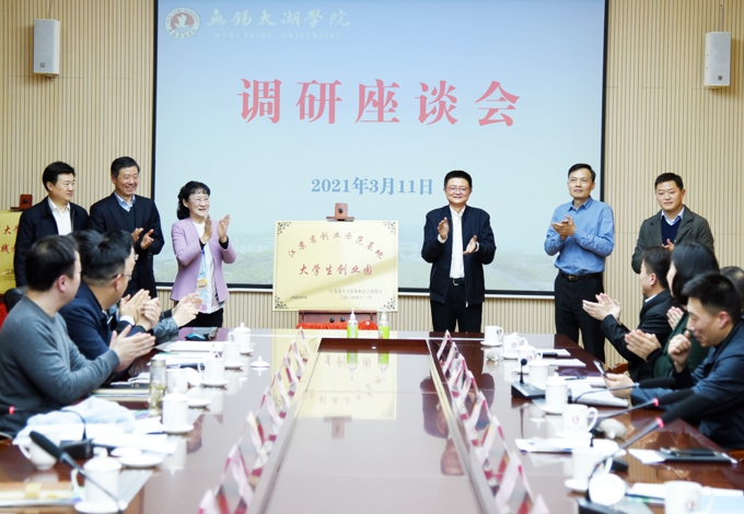 调研中,秦咏薪副市长一行参观了苏格兰学院、工科实训中心等,考察了校园环境和基础建设情况,对学校近年来的创新发展给予充分肯定。座谈会上,金秋萍理事长指出,近年来,学校在人才、科技、财政、经济、文化等领域为无锡地方经济社会高质量发展做出了自身贡献,“十四五”期间,学校将积极响应中央和省市对高等教育的要求,进一步加快发展步伐,提升办学规模和办学质量。她希望,市政府进一步加大扶持力度,推动新一轮厅市共建,助力太湖学院早日建成“无锡太湖大学”。李廉水校长简要介绍了学校办学情况和“十四五”发展规划。他指出,自创建以来,学校始终坚持“应用型、地方性、国际化”办学定位,为地方培养了一大批高素质应用型人才,有力促进了无锡地方经济社会发展。“十四五”期间,学校将以建好国家一流专业和一流课程、建成硕士学位授权单位、建设一批与著名企业合作的产业学院为抓手,早日建成特色鲜明、国内一流的应用型大学。