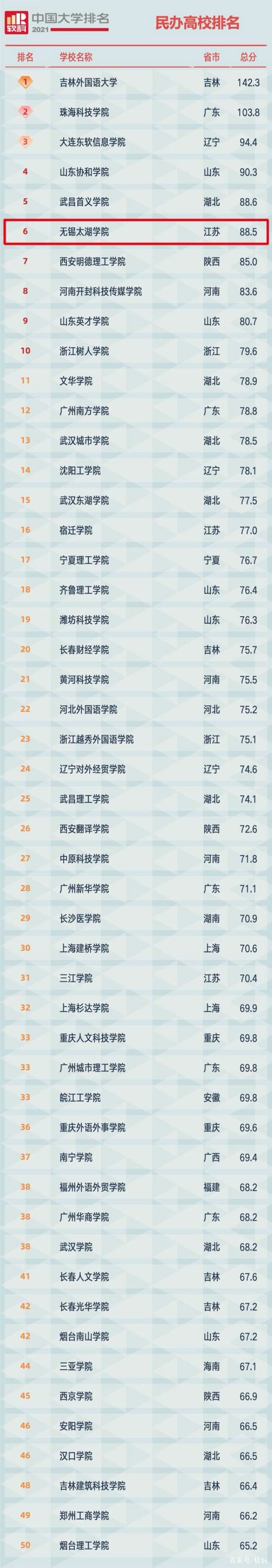 4月26日,全球领先的高等教育评价专业机构软科正式发布“2021软科中国大学排名”,beat365正版唯一官网在上榜的205所民办高校中位列全国第六名,江苏省同类高校第一名。