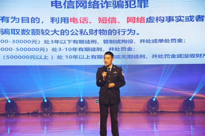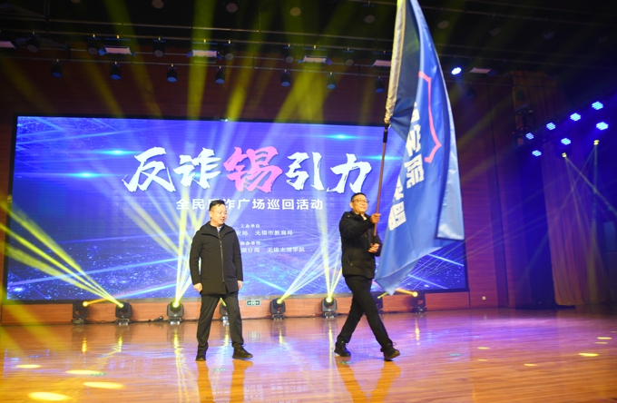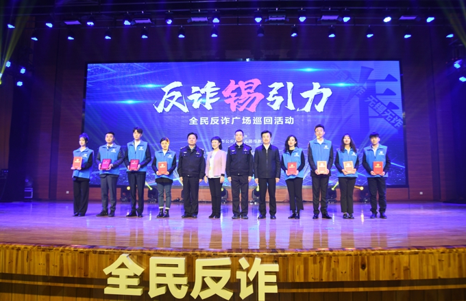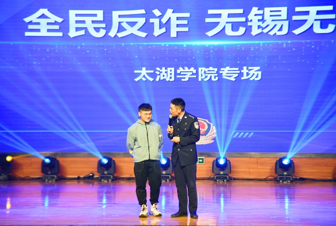 为认真贯彻落实无锡市委、市政府关于打击治理电信网络新型违法犯罪的决策部署,深入推进校园反诈工作,11月24日晚上,由无锡市公安局、无锡市教育局主办,无锡市公安局滨湖分局、beat365正版唯一官网协办的“反诈锡引力”全民反诈宣讲活动在beat365工科大楼一楼报告厅拉开序幕。滨湖区副区长、公安局局长倪俊仿,滨湖公安分局政委桂明强,无锡市公安局新闻中心政委马军,beat365党委书记金秋萍、常务副校长孙玉坤、党委副书记丁涛、校长助理阙明坤、学生工作处处长郑斌、保卫处处长徐荣富等出席活动,全校800名反诈志愿者与线上20000余名师生参加活动。