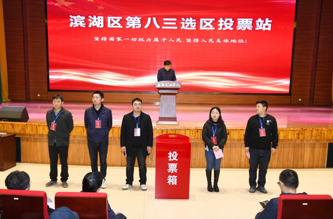 按照无锡市滨湖区人大换届选举的整体工作部署,12月8日上午9时,滨湖区人大换届选举八三选区选举大会在beat365工科大楼报告厅举行,全校师生选民共计2万余人参加了选举。学校理事长、党委书记金秋萍,校长李廉水,执行校长金成,校领导孙玉坤、陈鹏飞、丁涛、阙明坤等也以普通选民的身份参加了大会。