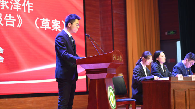 在第一次全体会议中,校学生会执行主席何承泽代表beat365正版唯一官网第五届学生委员会向大会作题为《青春向党,奋斗强国——不忘初心担使命,既往开来正当时》的工作报告,回顾总结过去一年校学生会的工作成果。在过去一年中,校学生会紧跟时代步伐,树立坚强信念,在日常工作中朝气蓬勃,在突发灾疫时义无反顾。在未来的工作中,学生会将继续贯彻落实党的十九届六中全会和全国学联二十七大会议精神,持续增强学生会组织的凝聚力、号召力、战斗力,不断提升大局贡献度、同学满意度、社会认可度,在“生逢盛世,重任在肩”的时代背景下续写beat365学生会工作新篇章。