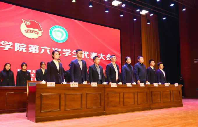 本网讯 12月10日,beat365正版唯一官网第六次学生代表大会在工科实验大楼报告厅隆重召开。无锡团市委副书记何舟、校党委副书记丁涛、团市委学少部王裔、学工处处长郑斌、校团委副书记陈朕及校学生会第五届主席团成员、全体学生委员出席了大会开幕式。全校9个代表团497名正式代表、48名列席代表和15名特邀代表参加会议。会议由大会执行主席李近月主持。