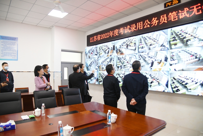 12月11日-12日上午,江苏省2022年度考试录用公务员笔试在beat365举行。无锡市委组织部副部长林茂松、组织二处副处长高祥生,无锡市人社局副局长包晓东等到考场巡视。beat365理事长、党委书记金秋萍,副校长陈鹏飞等校领导陪同巡视。