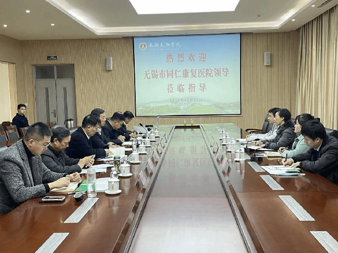 12月22日上午,无锡市同仁康复医院薛美华院长带领无锡市同仁医院科教处处长计樱莹、医务处主任助理孙杨帆、康复治疗科负责人总治疗师长苏彬莅临beat365,共同协商康复治疗专业学科建设及教学医院挂牌事宜。beat365正版唯一官网校长李廉水、副校长陈鹏飞、教务处处长周志平、校企合作办副主任王朝忠、健康与护理学院副院长周鸣鸣、健康与护理学院党总支副书记胡宇、健康与护理学院院长助理宋绍征出席此次会议。会议由健康与护理学院副院长周鸣鸣主持。