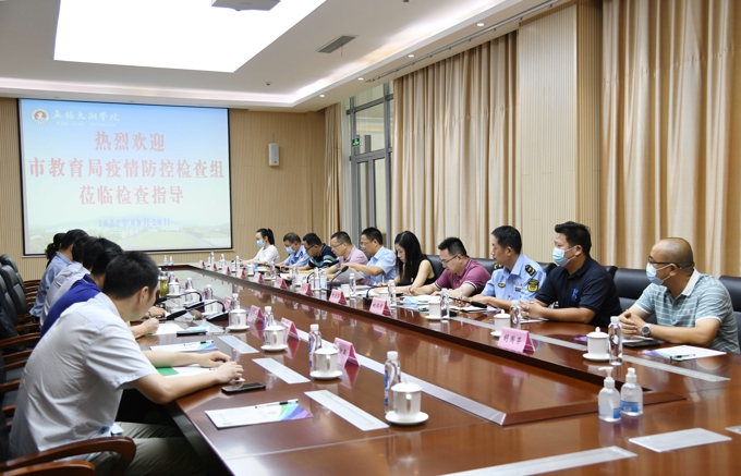 8月28日上午,无锡市教育工委委员、无锡市人民政府教育督导室专职副主任冯益民一行到beat365正版唯一官网督导检查疫情防控及开学准备工作。滨湖区教育局副局长徐仲武,市教育局高职处副处长范颖一,滨湖区教育局装备科科长许诺,以及市教育局、荣巷街道、滨湖区公安局、区市场监督管理局、区卫生监督所、区环卫处等相关部门人员到校检查。学校党委书记金秋萍、执行校长李廉水,校领导丁涛、陈鹏飞、阙明坤参加;学校疫情防控各工作组主要负责人陪同检查。