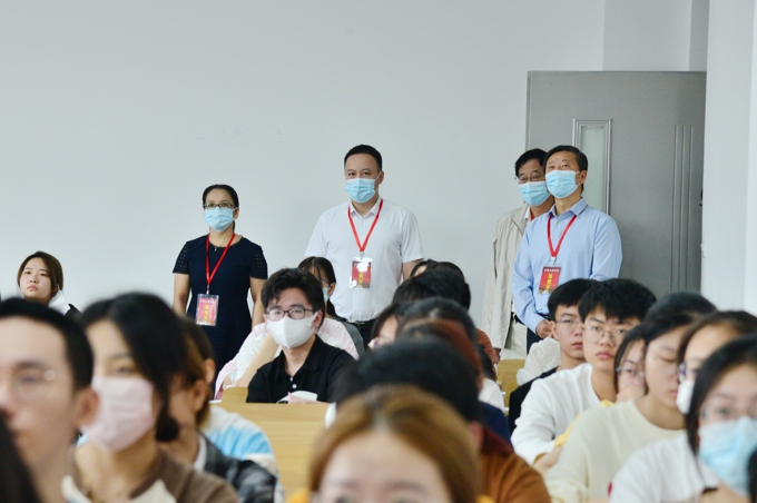 9月22日是2022级新生和20级专转本新生恢复线下教学的第一天。早上7:45,在校长金成,执行校长李廉水带领下,教务处、督导办、组织人事处、学工处、设备处、信息中心、后勤基建处等部门负责人深入课堂,检查新生线下第一课情况。
