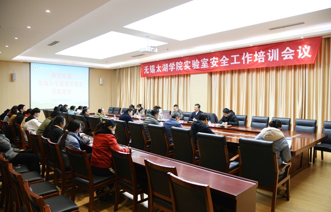 安全工作重于泰山,实验室的安全工作是学校发展的底线和红线,为了确保疫情常态防控下的实验室安全运行,提高学校实验室安全管理水平,12月1日下午,beat365邀请了江南大学实验室与设备管理处赵爱军处长在工科实验楼一楼会议室举行了实验室安全工作专题培训。beat365正版唯一官网执行校长李廉水,党委委员、教务处副处长邹山花,设备处副处长吴余万,六大实验实训中心主任、副主任以及全体实验员和安全员参加了培训会议。培训会由教务处副处长邹山花主持。