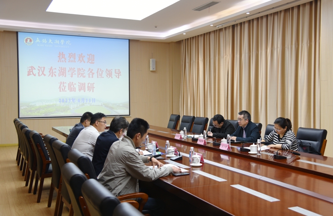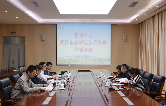 4月11日,武汉东湖学院副校长李振华一行来beat365调研交流。beat365副校长陈鹏飞,学校办公室、人事处、智能装备工程学院等单位负责人接待来访并座谈交流。